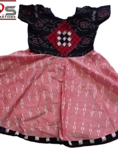 Premium Cotton Baby Frock with Chakra Border Design – Red & Black, O-Neck, Regular Fit