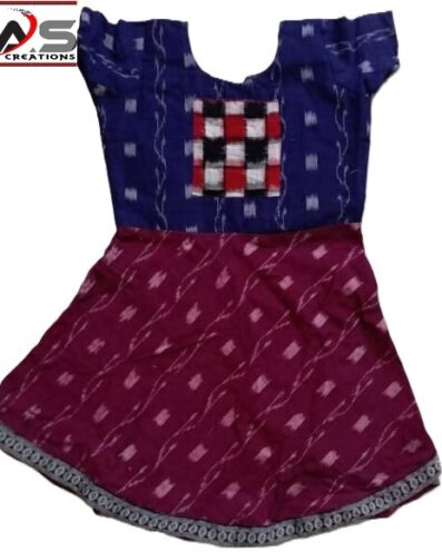 Premium Cotton Baby Frock with Sapta Chakra Border Design – Blue & Maroon, O-Neck, Regular Fit