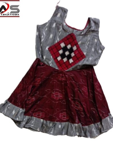 Premium Cotton Baby Frock with Large Sapta Less Border Design – Grey & Maroon, O-Neck, Regular Fit