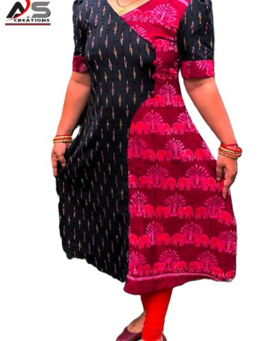 Price range: ₹1,800.00 through ₹2,100.00PURE SAMBALPURI HAMDLOOM GOWN COTTON A-LINE GOWN-Black & Red, Regular Fit