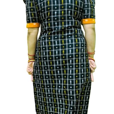 Pure Sambalpuri Handloom Cotton A-Line Gown – Green & Black, Regular Fit