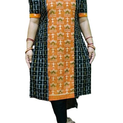 Add a soft yet striking look to your ethnic wardrobe with this pure Sambalpuri handloom straight kurti. Crafted from breathable cotton fabric, it features a clean straight silhouette with 1/3rd.