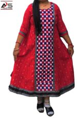 PURE SAMBALPURI HAMDLOOM GOWN COTTON A-LINE GOWN-Red, Regular Fit