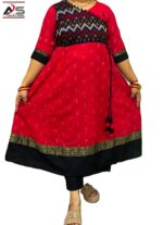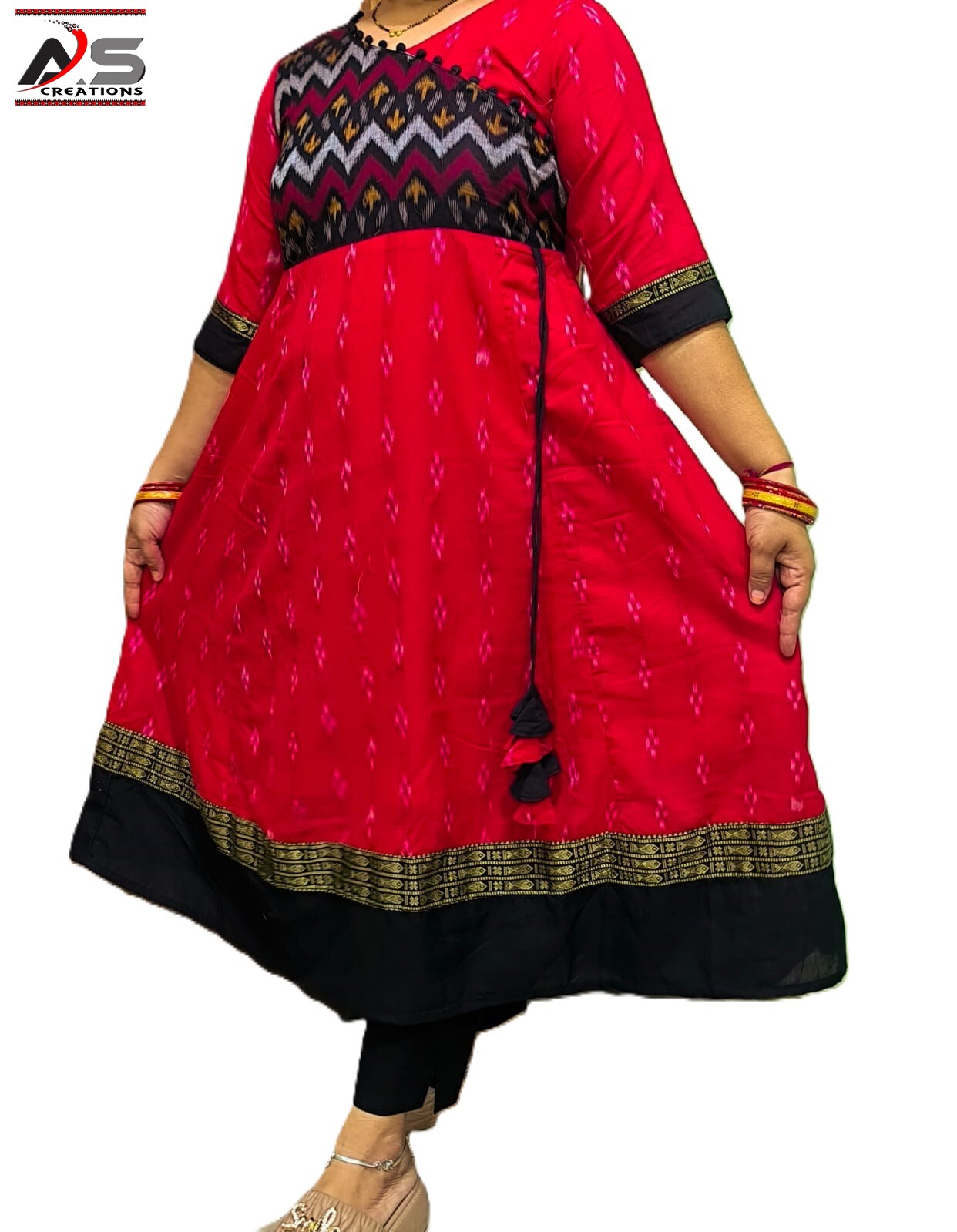 Pure Sambalpuri Handloom Cotton Frock Gown – Red & Black, Regular Fit