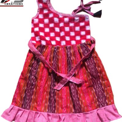 Premium Cotton Baby Frock with Square Small Border Design – Red, Pink & Maroon, O-Neck, Regular Fit