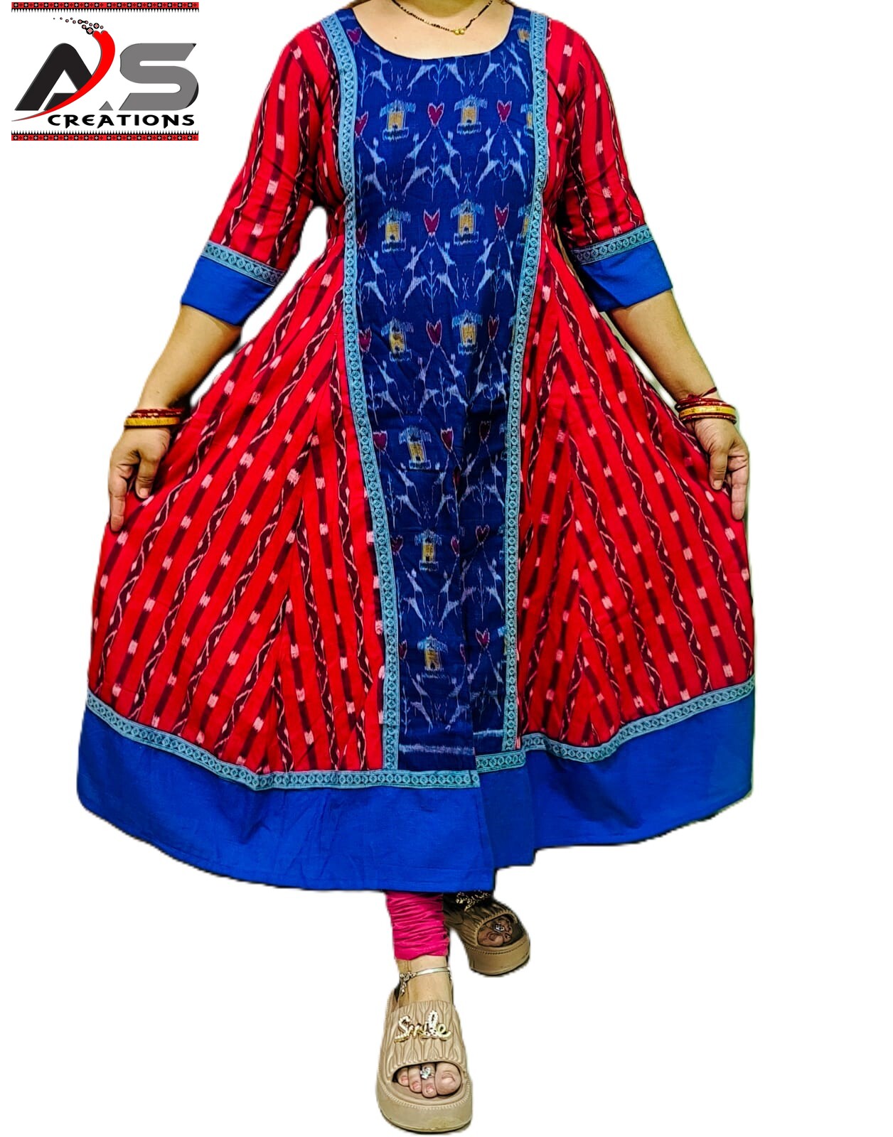 The ASC-GW-MC-015 Sambalpuri Handloom Middle-Cut Gown by AS Creation beautifully showcases traditional handloom craftsmanship blended with modern comfort. Made from pure cotton Sambalpuri handloom fabric, this gown offers excellent softness, breathability, and all-day comfort.