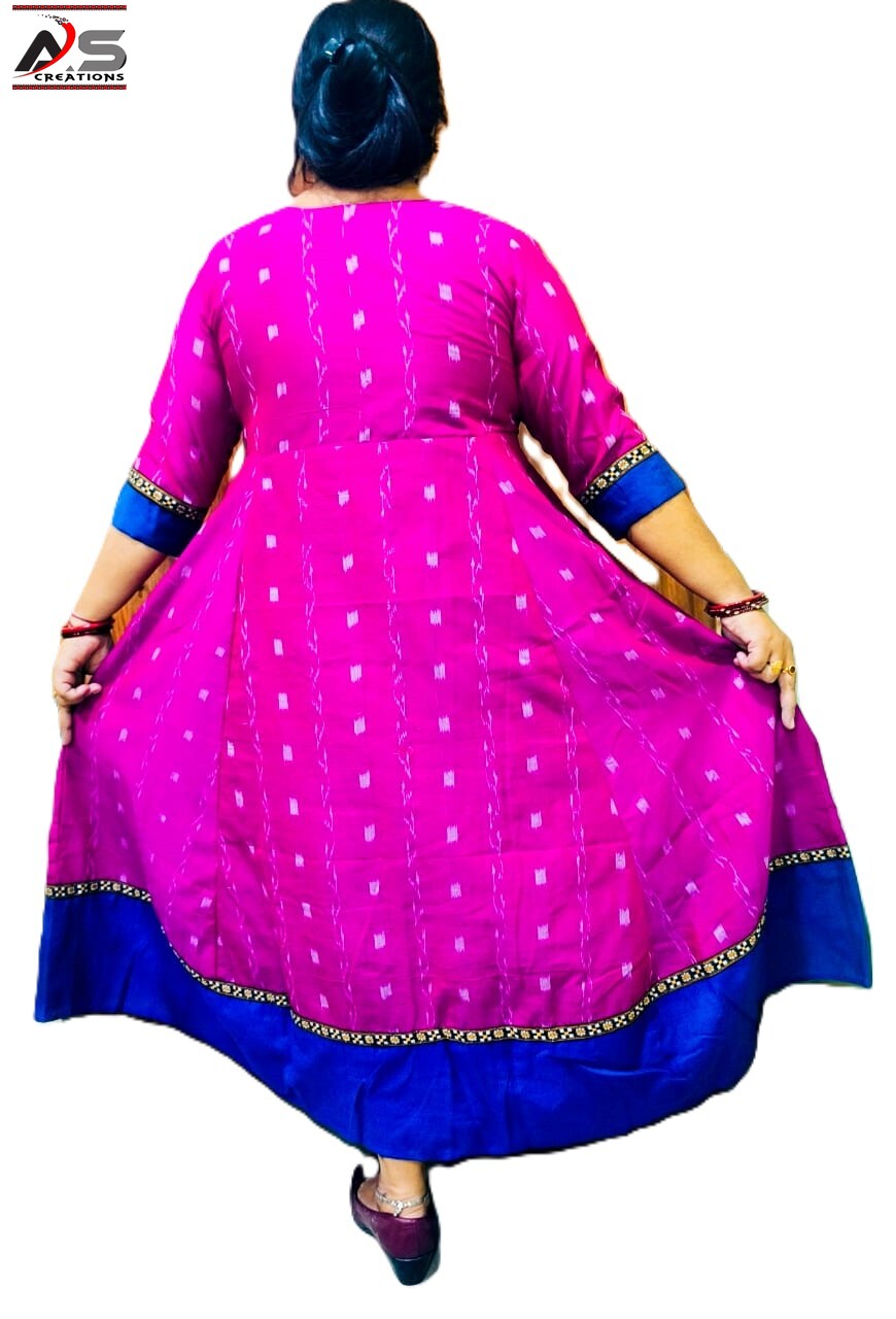 PURE SAMBALPURI HAMDLOOM GOWN COTTON MIDDLE CUTT GOWN-Magenta & Blue, Regular Fit