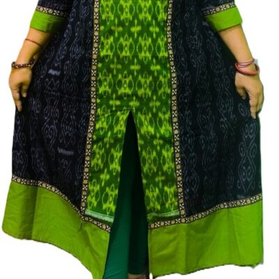 Pure Sambalpuri Handloom Cotton A-Line Gown – Green & Black, Regular Fit