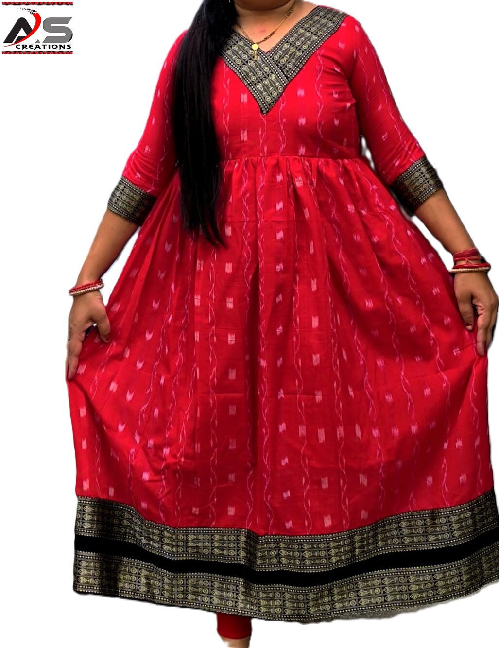 Pure Sambalpuri Handloom Cotton Frock Gown – Red & Black, Regular Fit
