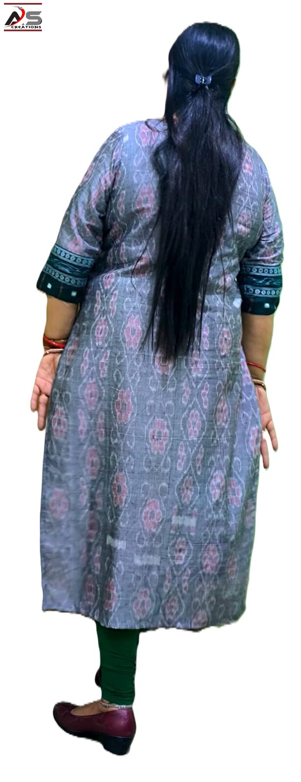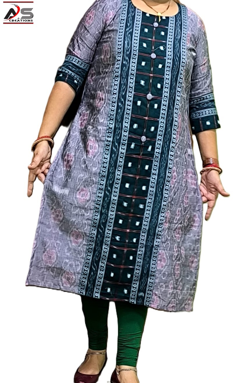 The sophisticated grey and black color combination highlights the richness of Sambalpuri weaving, making this kurti a versatile and timeless addition to any ethnic collection. Proudly made in India, it reflects authentic craftsmanship and heritage-inspired design.