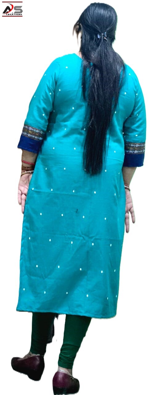 Add effortless elegance to your ethnic wardrobe with this pure Sambalpuri handloom straight kurti. Crafted from breathable cotton fabric, it features a clean straight silhouette with 1/4th sleeves in a soothing sky blue and blue color combination.