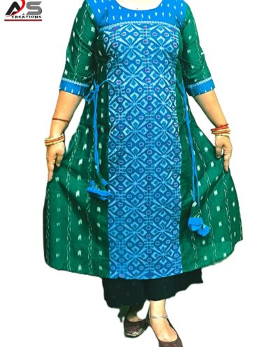 Price range: ₹1,900.00 through ₹2,200.00PURE SAMBALPURI HAMDLOOM GOWN COTTON MIDDLE CUTT GOWN-Black & Green, Regular Fit